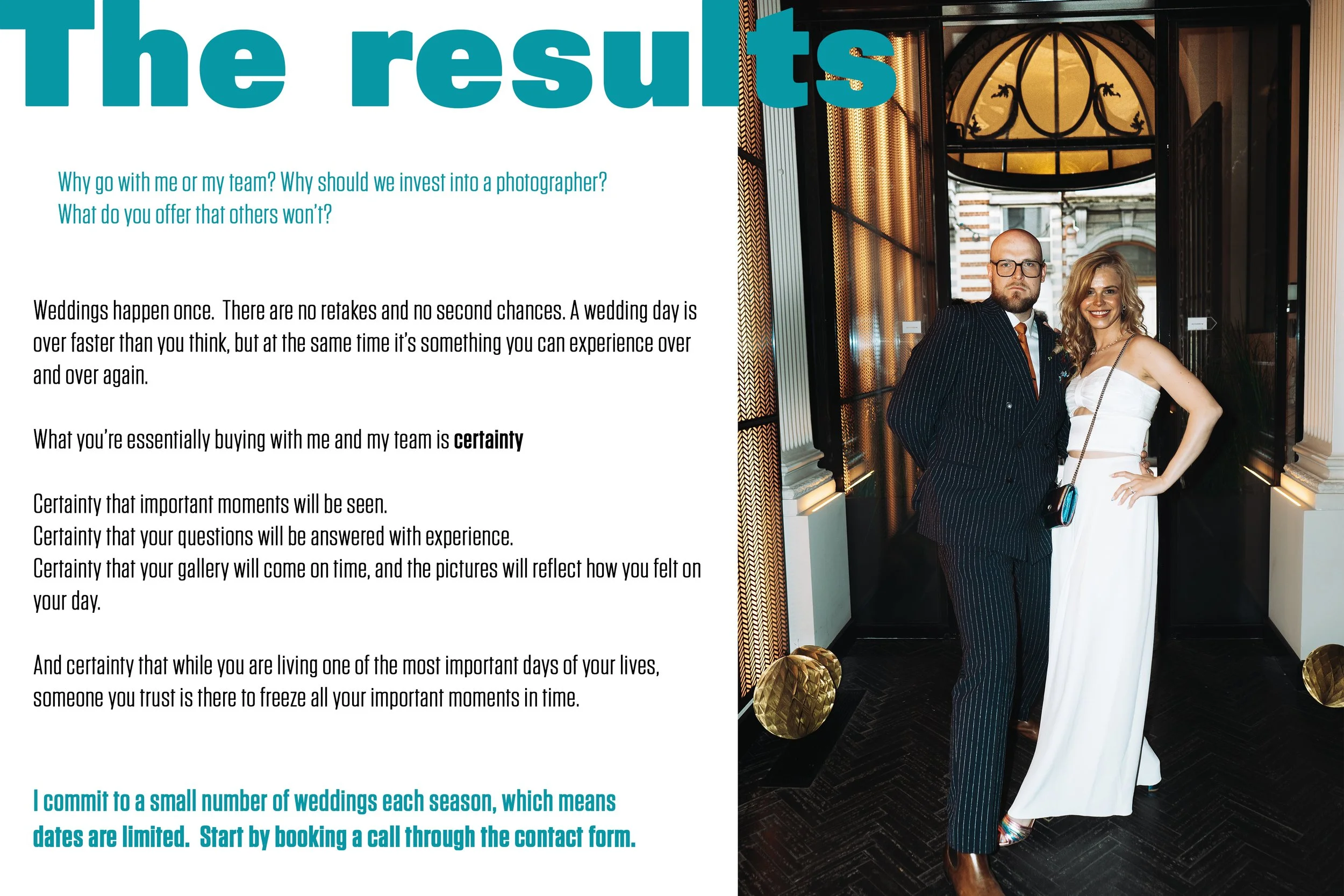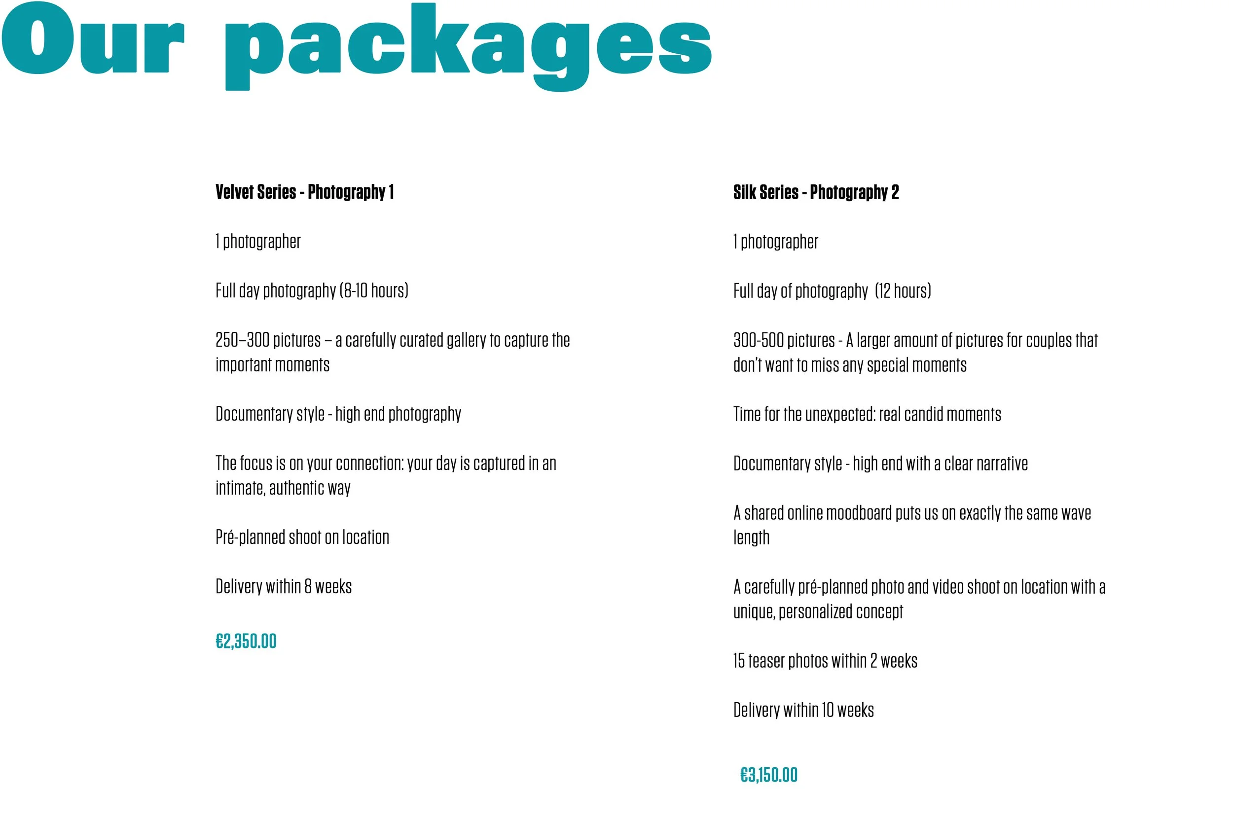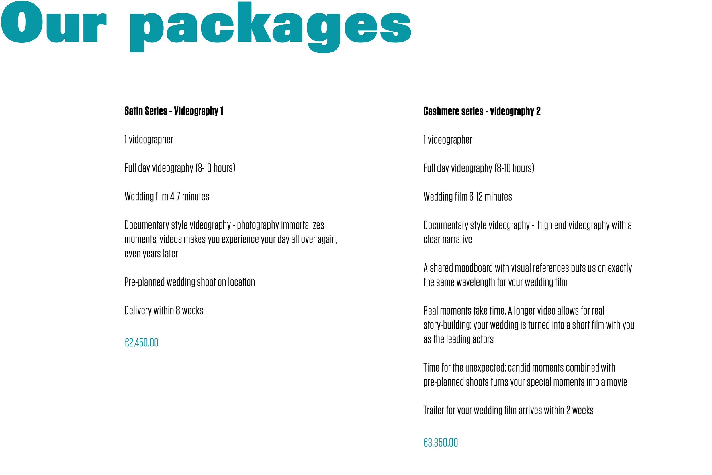 Of course, the packages fit most of our client’s needs, but we understand weddings are complicated and personal. High end services also means custom packages!